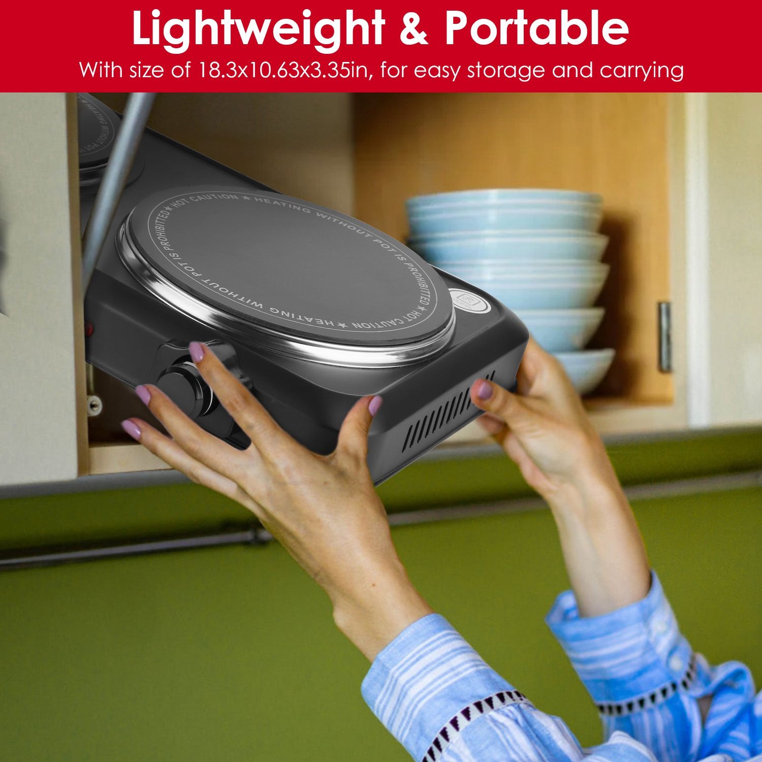 Thermostat Temp Control & Easy Cleaning: The hot plate will auto shut off and the indicator light in front of the enclosure will be extinguished when the preset/desired temperature is reached. When it is lower than the temperature you set, the light turns red to indicate the cooktop is warming or heating. Just simply wipe the non-electrical parts with a damp sponge or half-wet cloth for easy cleaning after cooling down completely and plug removed.